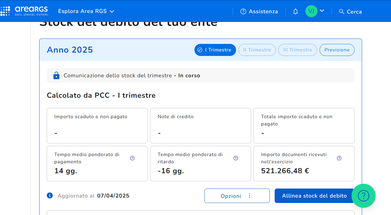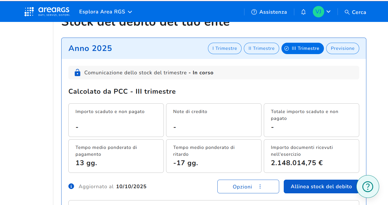 Ammontare complessivo dei debiti