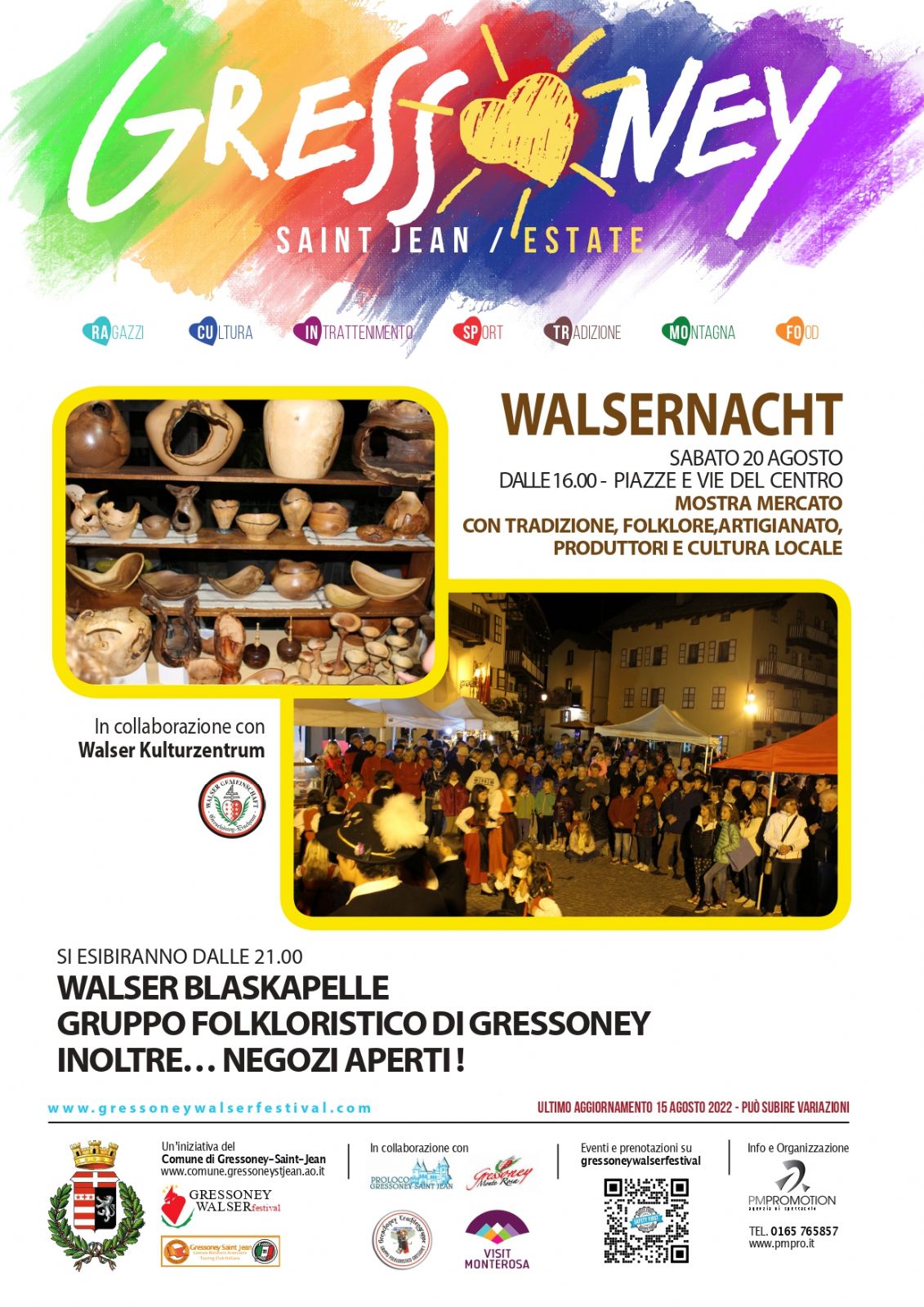 Dalle ore 21 si esibiranno il gruppo musicale Walserblaskapelle e il gruppo Folkloristico di Gressoney inoltre ci saranno i negozi aperti fio a tarda sera.