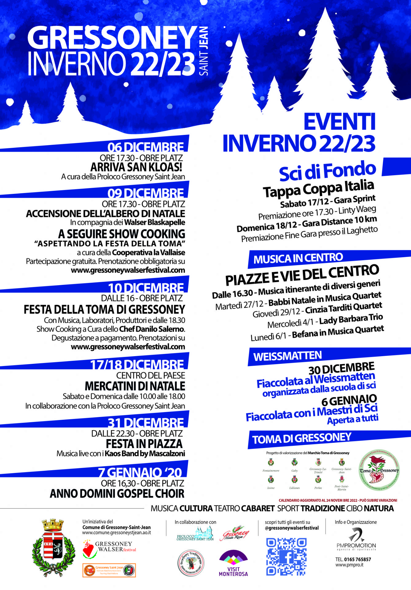 Diversi eventi a partire dal periodo del ponte dell'Immacolata fino alla fine delle feste natalizie con musica, sport feste in piazza, enogastronomia e fiaccolate.