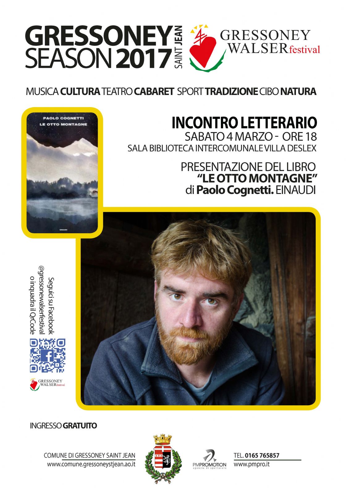 Sabato 4 Marzo – dalle ore 18.00 presso Villa Deslex a Gressoney Saint Jean, incontro con l’autore Paolo Cognetti che presenta il suo libro “Le otto montagne”.